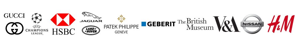 Gucci, UEFA, HSBC, Jaguar Land Rover, Patek Philippe, Geberit, FIFA, British Museum, V&A, NISSAN, H&M