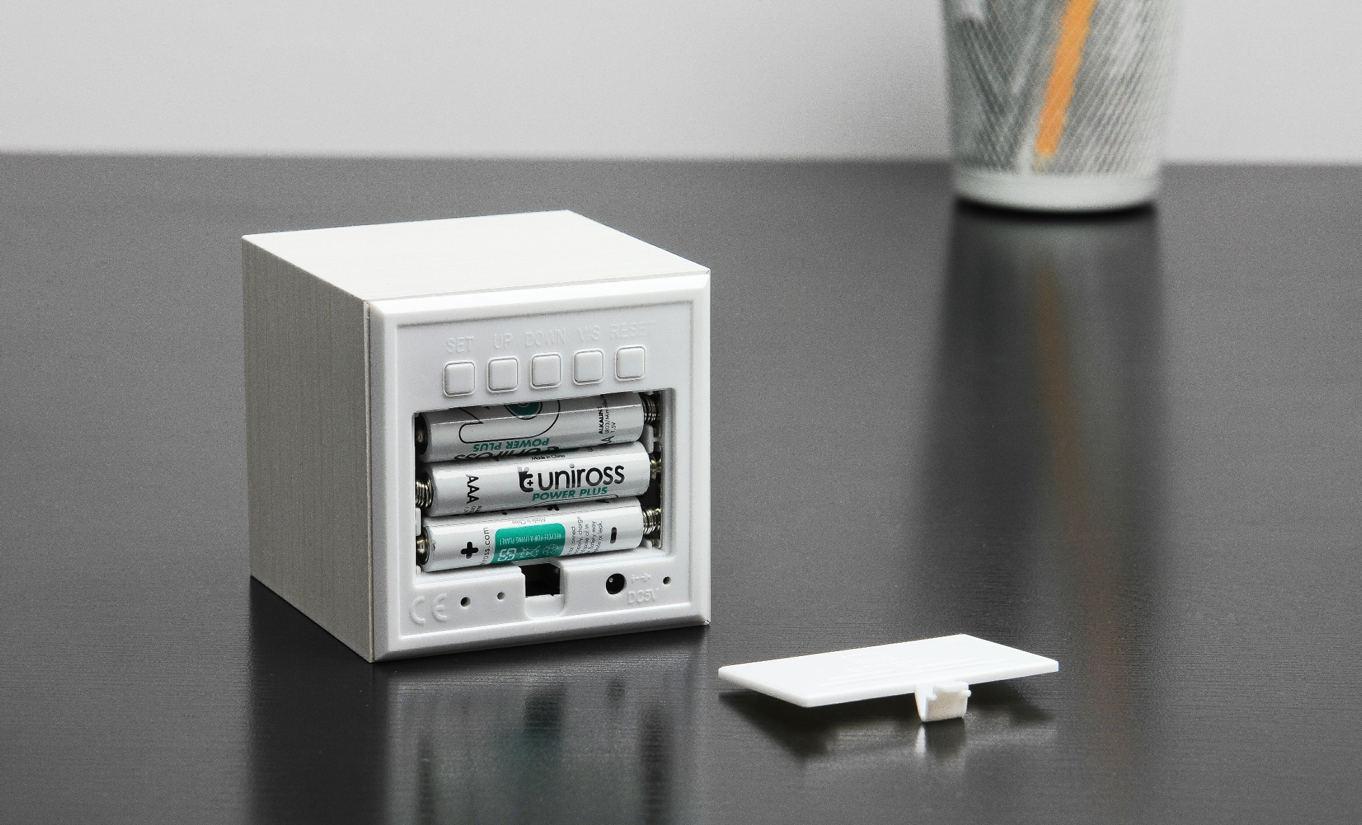 With its clean lines and intuitive design, the Cube Click Clock displays time, date, and temperature in a clear, glowing light that fades into the wooden surface when inactive. It’s powered by USB or batteries, making it ideal for use on bedside tables, desks, and shelves without unsightly wires or clutter.