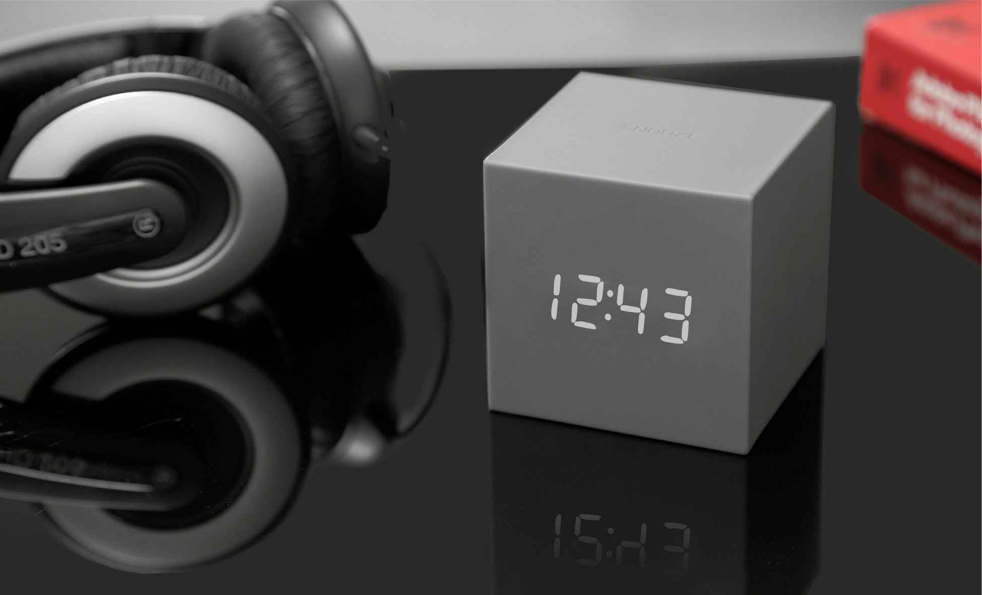 The Gravity Cube Click Clock still incorporates the same sound activated LED display technology as our other Click Clock ranges and it displays the time, date and temperature alternately at the click of your fingers or clap of your hands. When you need to check the time in the dark, just give a gentle tap of your bedside table or simple click of your fingers the time will instantly appear for you and switch off automatically when you don’t need it.