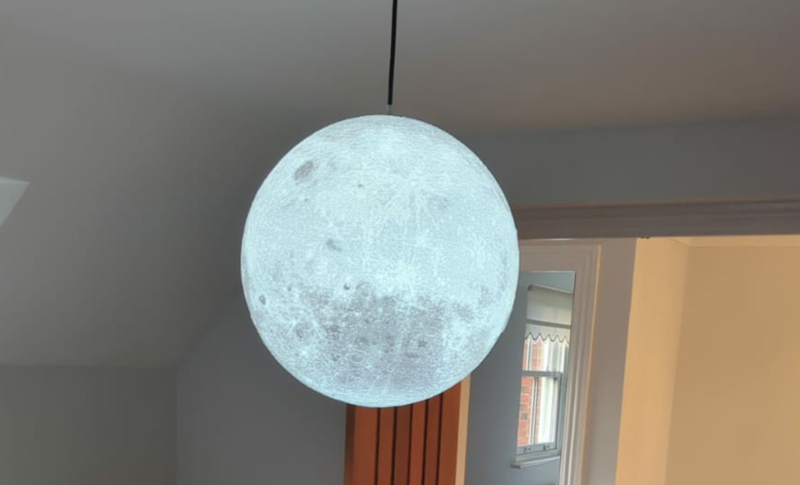 The Everyone’s Moon Light can be connected up like any normal ceiling pendant light, Featuring an amazingly detailed and life-like NASA imagery of the Lunar surface using 3D